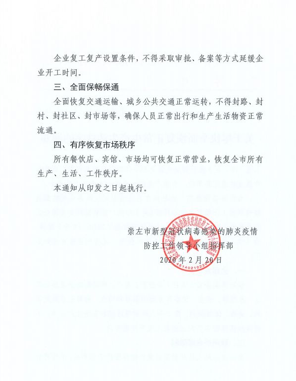 重磅!崇左發(fā)布通知:全面復產(chǎn)復工,恢復所有生產(chǎn)、生活、工作秩序