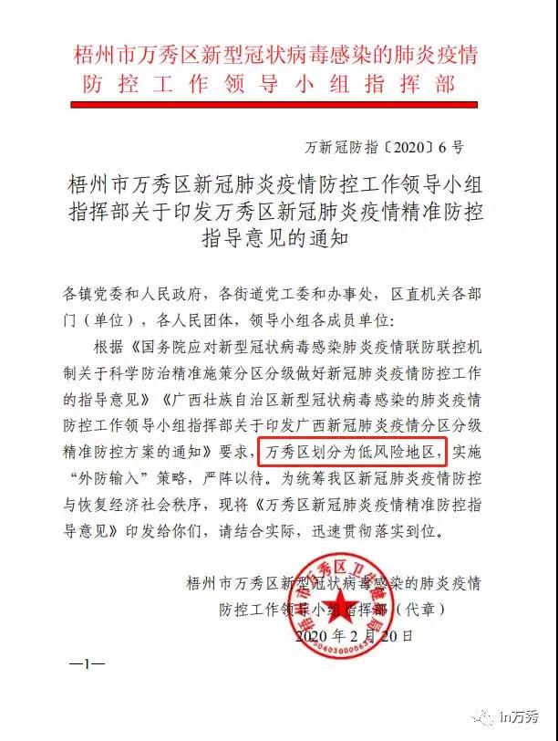 為全面貫徹落實(shí)廣西壯族自治區(qū)新型冠狀病毒感染的肺炎疫情防控工作領(lǐng)導(dǎo)小組指揮部《關(guān)于印發(fā)廣西新冠肺炎疫情分區(qū)分級(jí)精準(zhǔn)防控方案的通知》(桂新冠防指〔2020〕50號(hào))精神,為盡快全面恢復(fù)全區(qū)正常生活生產(chǎn)秩序,現(xiàn)將相關(guān)事宜通知如下: