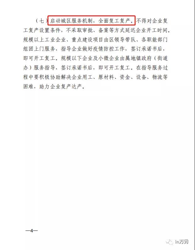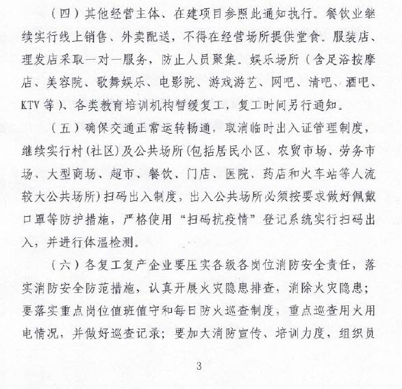 5.其他經(jīng)營(yíng)主體、在建項(xiàng)目參照此通知執(zhí)行,娛樂場(chǎng)所、互聯(lián)網(wǎng)上網(wǎng)服務(wù)營(yíng)業(yè)場(chǎng)所(網(wǎng)吧)、各類教育培訓(xùn)機(jī)構(gòu)暫緩復(fù)工,復(fù)工時(shí)間另行通知。