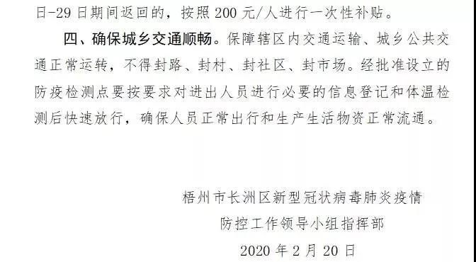 (四)保證交通運(yùn)輸、城鄉(xiāng)公共交通正常運(yùn)轉(zhuǎn),不得封路、封村、封社區(qū)、封市場(chǎng),確保人員正常出行和生產(chǎn)生活物資正常流通。