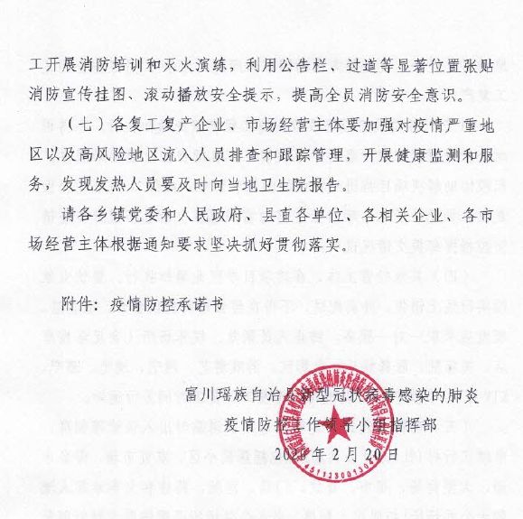 五、保障縣城和鄉(xiāng)鎮(zhèn)商品物資供應(yīng)。所有集市、超市、門店在做好營(yíng)業(yè)場(chǎng)所消毒、個(gè)人防護(hù)的情況下有序恢復(fù)營(yíng)業(yè),方便居民生產(chǎn)生活。各鄉(xiāng)鎮(zhèn)視情況逐步恢復(fù)“圩日”。