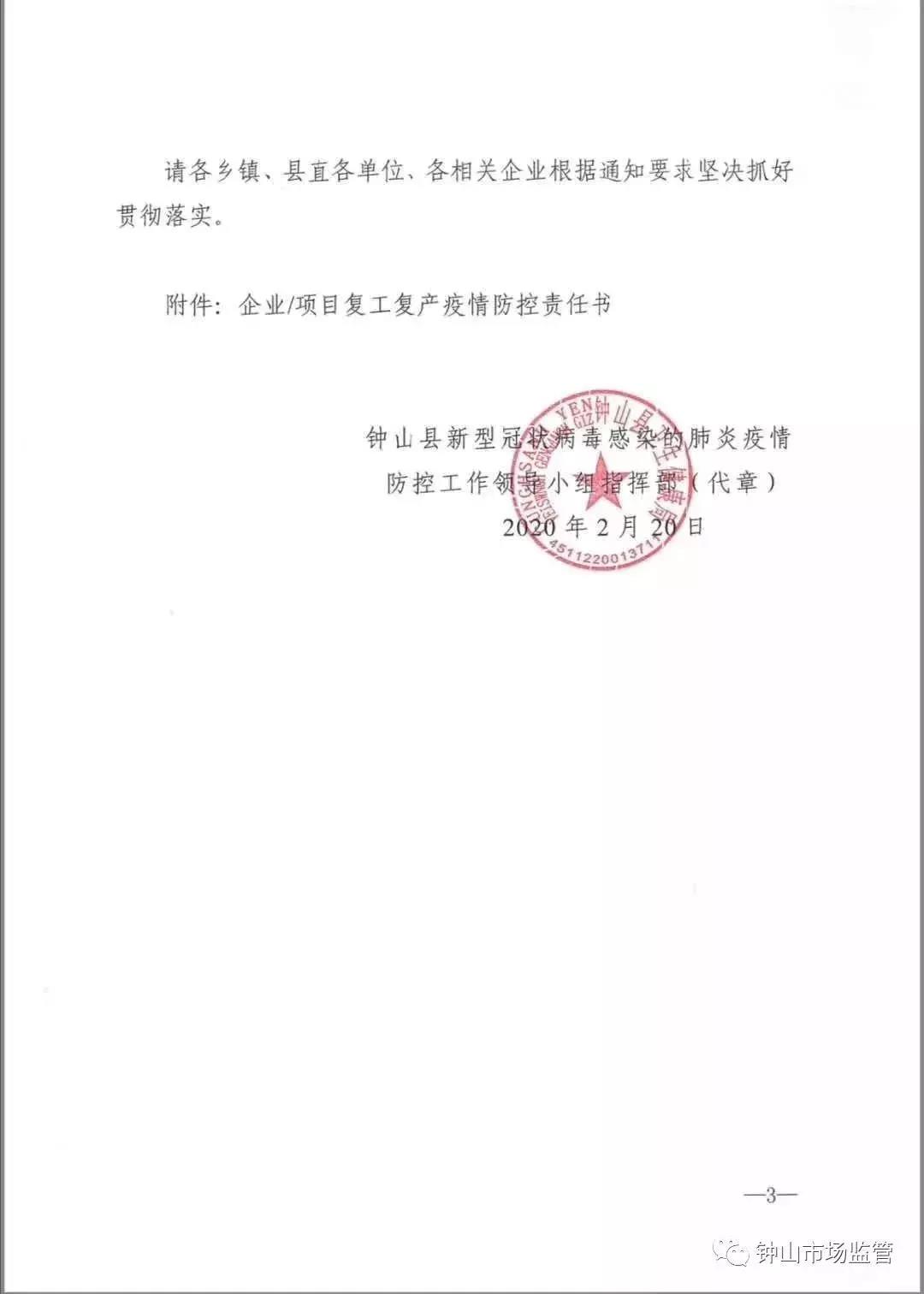 4.各類政府投資項(xiàng)目在建工程參照此通知執(zhí)行,不得再對(duì)企業(yè)設(shè)置復(fù)工復(fù)產(chǎn)條件,盡快復(fù)工。各項(xiàng)目業(yè)主要主動(dòng)服務(wù),積極協(xié)助解決項(xiàng)目推進(jìn)過程中的問題和困難,確保2月底前全面復(fù)工。如無法復(fù)工,項(xiàng)目業(yè)主需向平桂區(qū)新冠肺炎疫情防控指揮部提交情況說明。